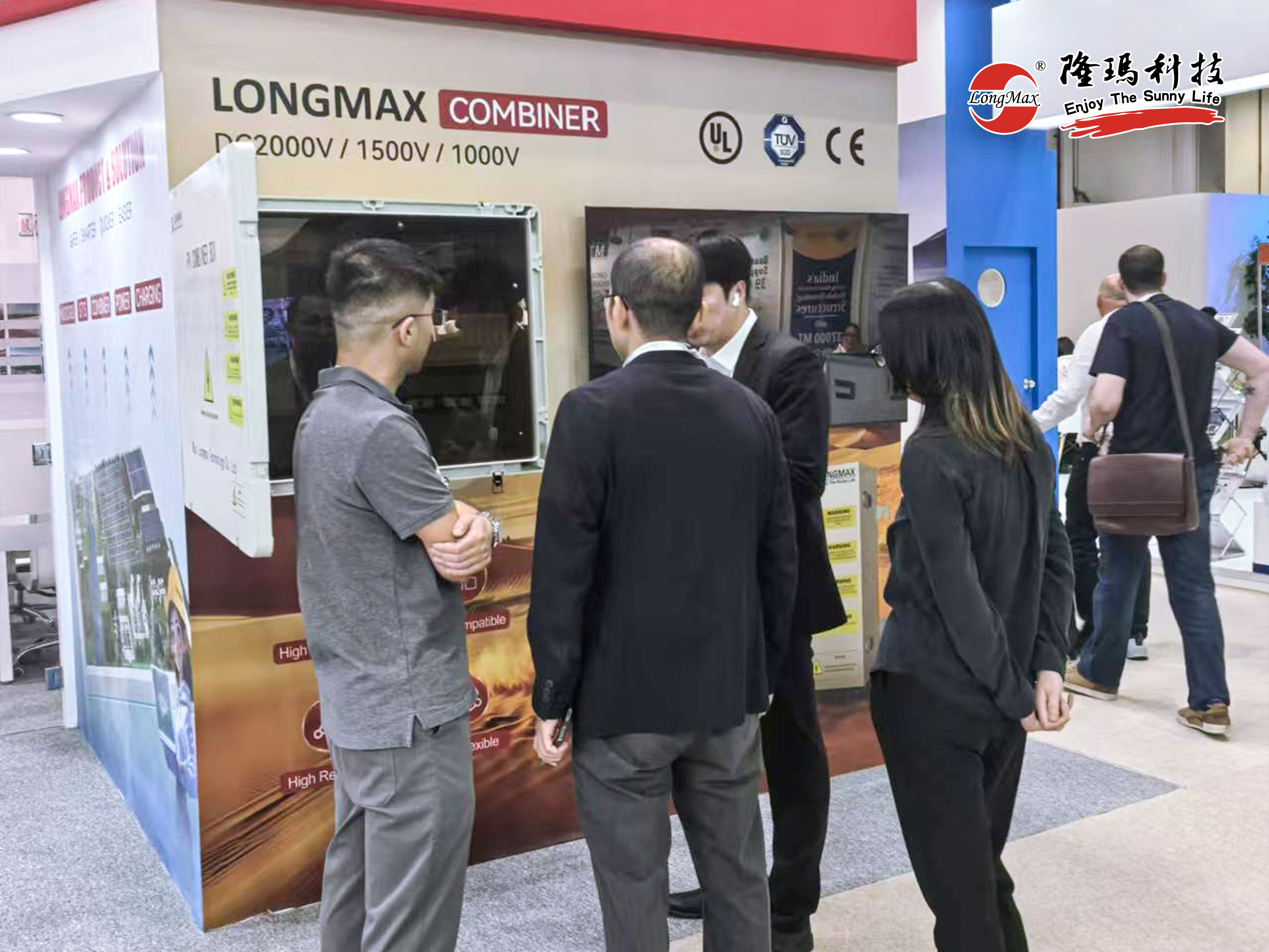 在展會上,隆瑪新一代DC2000V光伏系統(tǒng)智能匯流箱一經(jīng)亮相便以創(chuàng)新設(shè)計與卓越性能牢牢鎖住諸多參觀者的目光,成為現(xiàn)場TOP級“流量明星”。從傳統(tǒng)DC1500V升級到DC2000V,隆瑪DC2000V光伏智能匯流箱在輸入輸出電壓性能上實現(xiàn)了顯著提升,系統(tǒng)傳輸損耗更是銳減至0.5%,從而大幅提高了整個能源系統(tǒng)的轉(zhuǎn)換與傳輸效率。同時,其全新的大箱體設(shè)計,配合多種先進的自動檢測、關(guān)斷功能以及智能通信運維功能,不僅滿足了更高等級的防護要求,更能穩(wěn)健地應(yīng)對沙漠環(huán)境中各種極端惡劣條件。